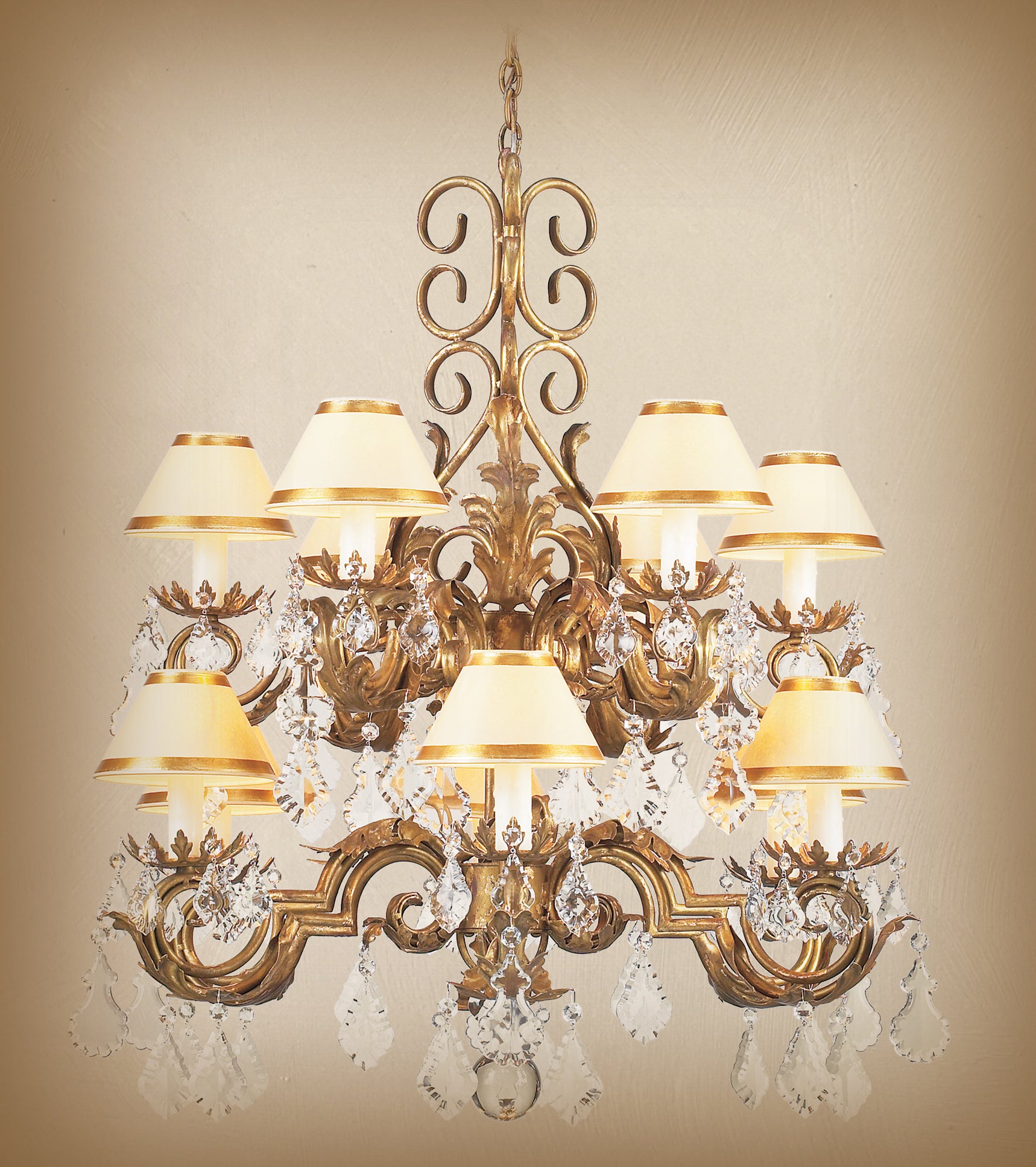This hand-forged wrought iron chandelier is beautifully decorated with hand-cut European crystals sure to complement any formal setting. Each crystal is meticulously hand-applied to enhance its elegance.
