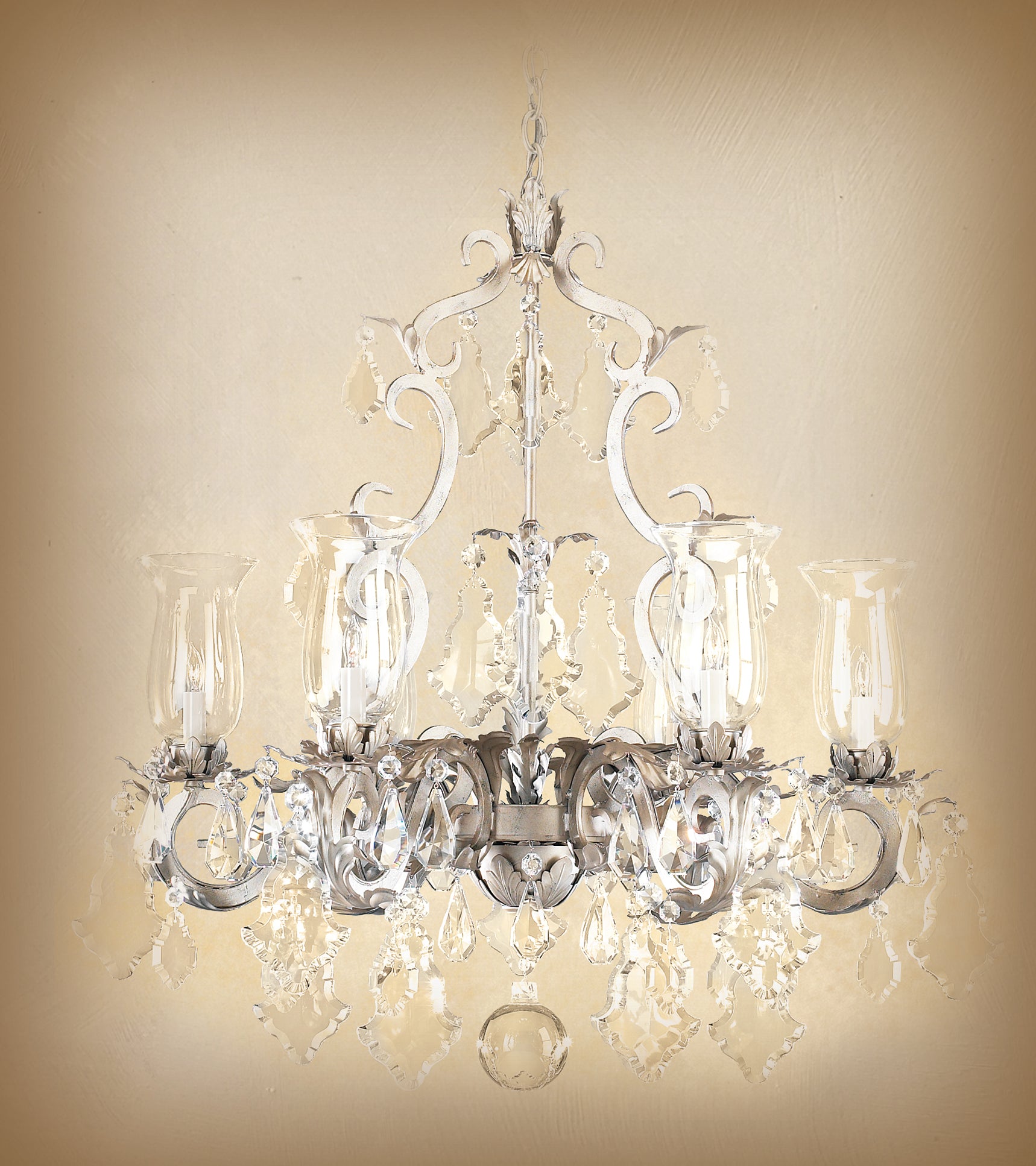 This hand-forged wrought iron chandelier is beautifully decorated with hand-cut European crystals sure to complement any formal setting. Each crystal is meticulously hand-applied to enhance its elegance.