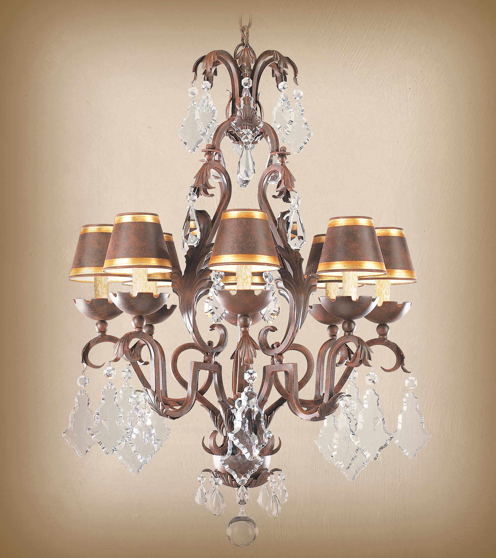 This hand-forged wrought iron chandelier is beautifully decorated with hand-cut European crystals sure to complement any formal setting. Each crystal is meticulously hand-applied to enhance its elegance.