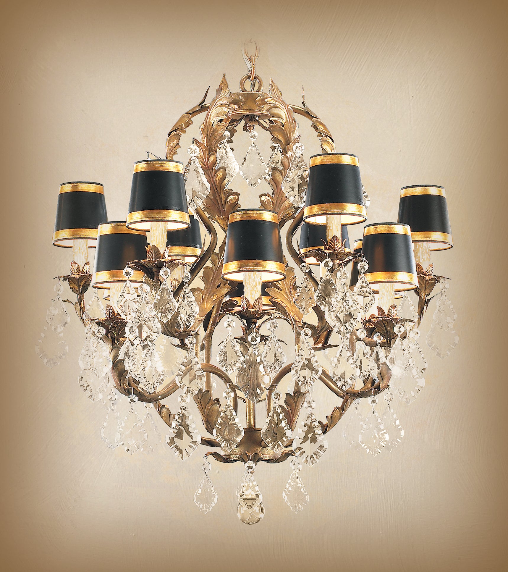 This hand-forged wrought iron chandelier is beautifully decorated with hand-cut European crystals sure to complement any formal setting. Each crystal is meticulously hand-applied to enhance its elegance.