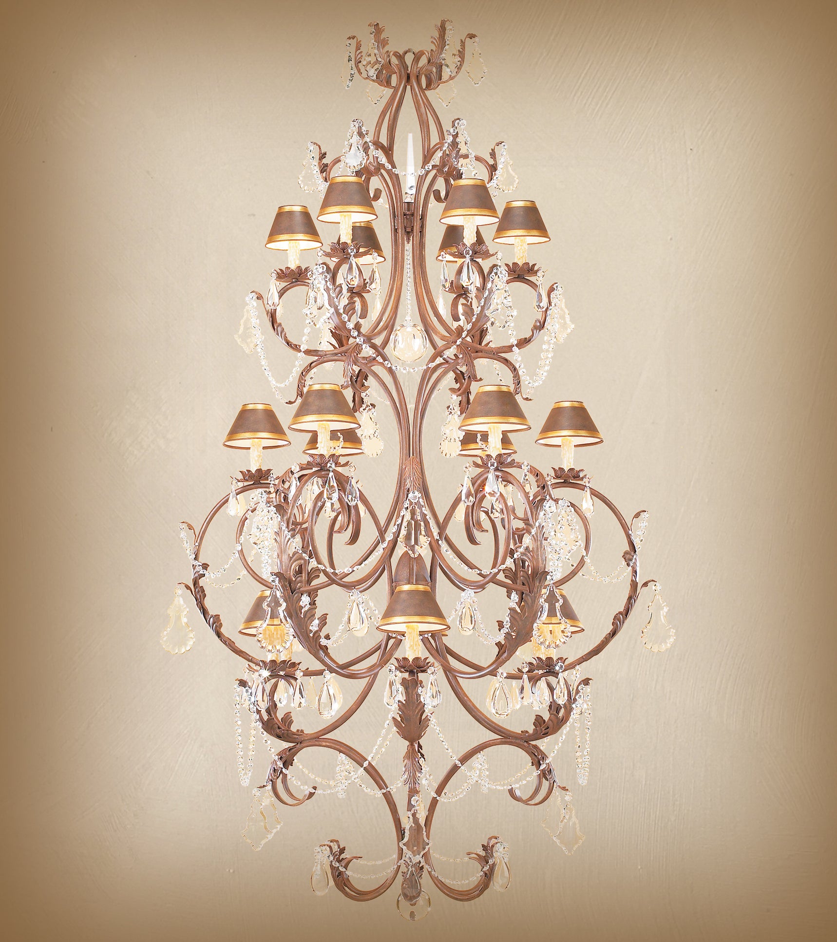 This hand-forged wrought iron chandelier is beautifully decorated with hand-cut European crystals sure to complement any formal setting. Each crystal is meticulously hand-applied to enhance its elegance.