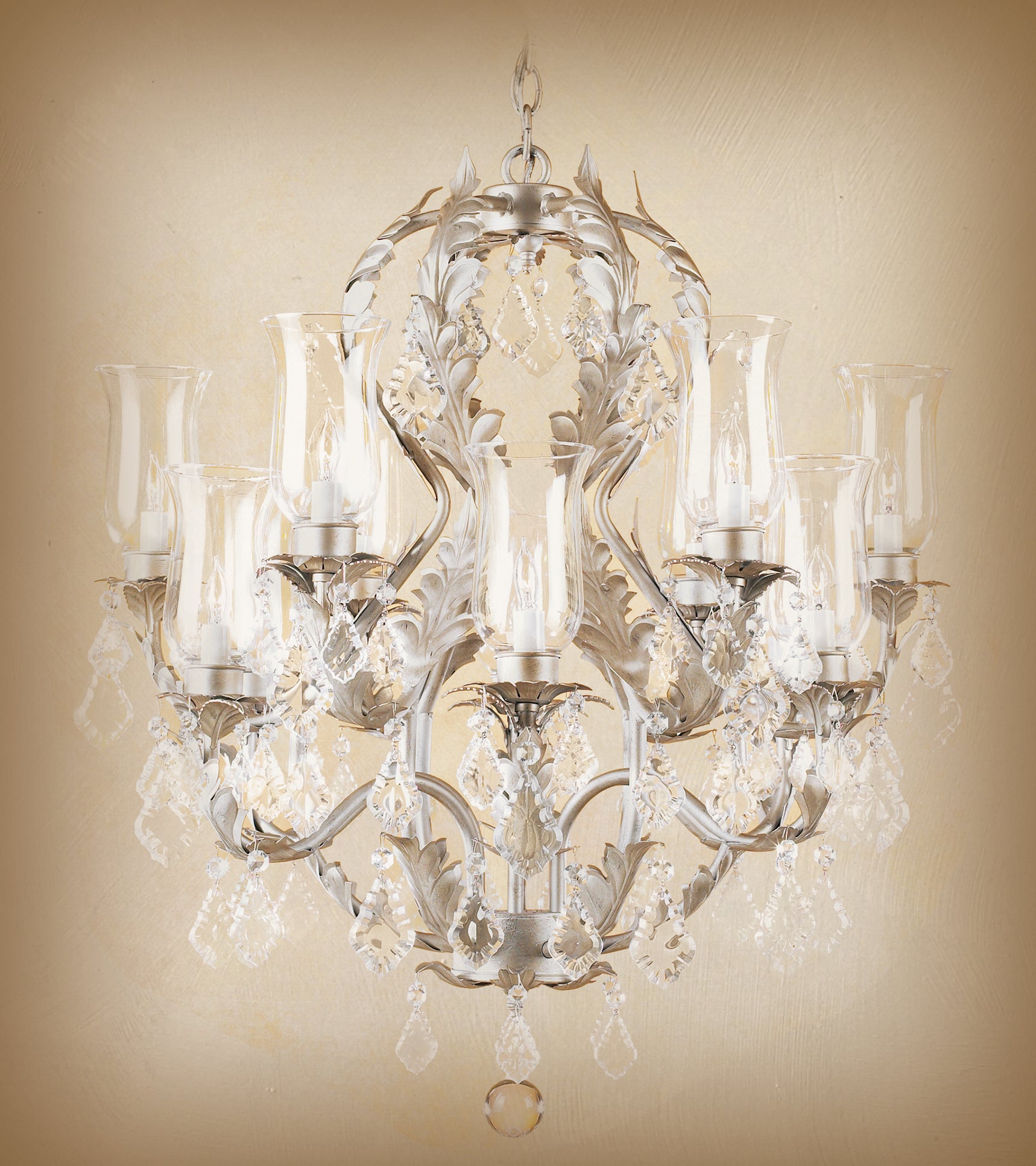 This hand-forged wrought iron chandelier is beautifully decorated with hand-cut European crystals sure to complement any formal setting. Each crystal is meticulously hand-applied to enhance its elegance.