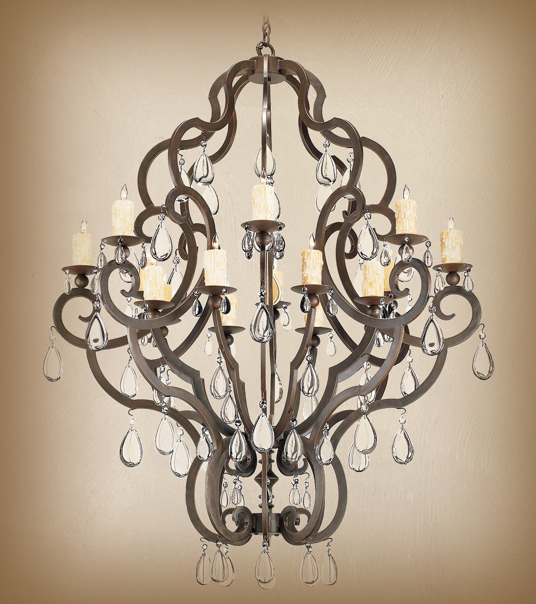 This hand-forged wrought iron chandelier is beautifully decorated with hand-cut European crystals sure to complement any formal setting. Each crystal is meticulously hand-applied to enhance its elegance.
