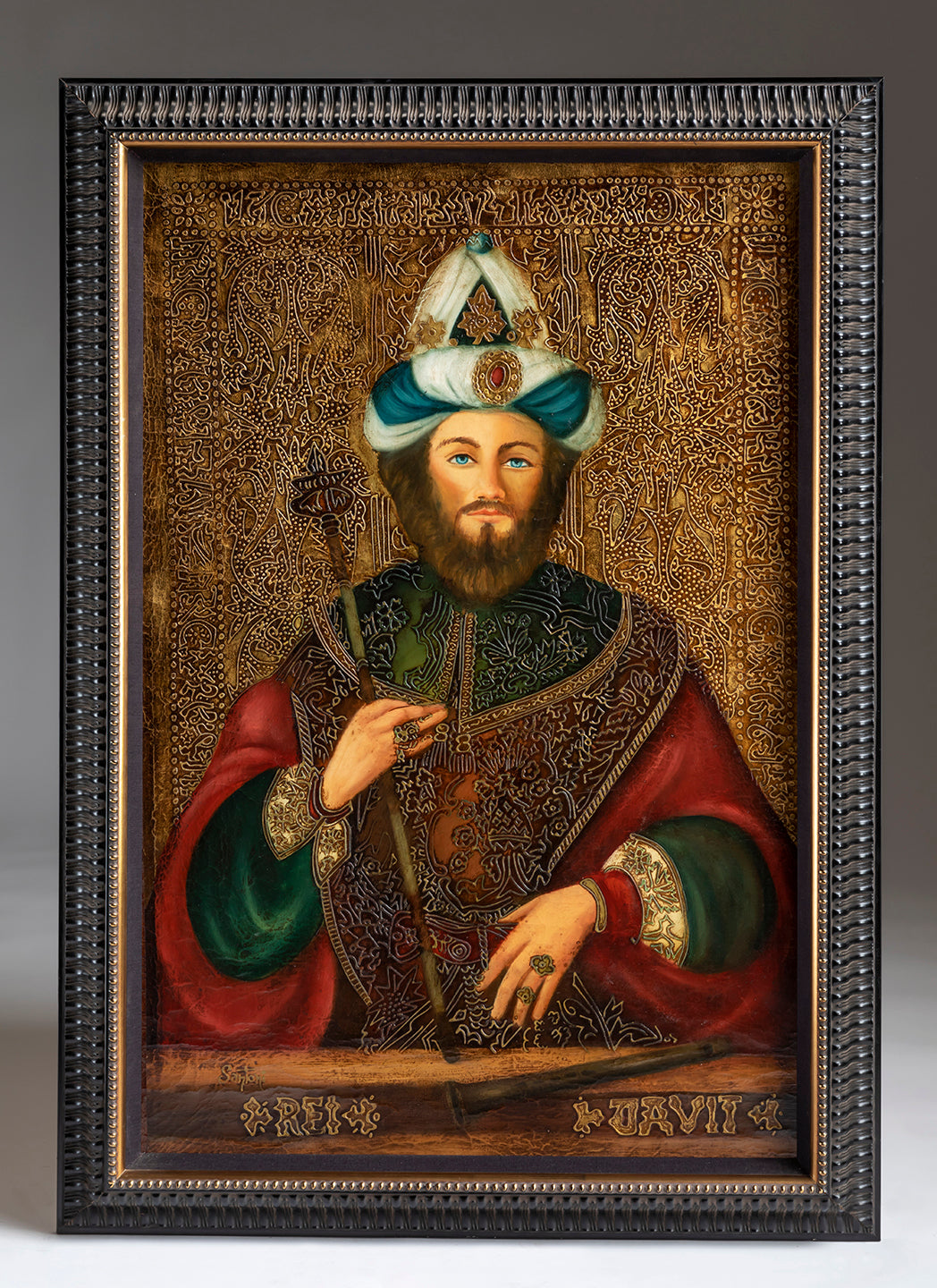 This beautiful painting of Rei Davit is a striking piece of art that features an embossed design, adding an extra dimension to the piece. The painting showcases the artist's skillful brushwork, with vibrant colors and intricate detailing that bring the scene to life. Its unique embossed texture and striking imagery make it a perfect addition to any art collection or as a statement piece in your home decor.